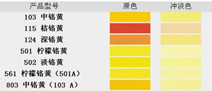 广东桔铬黄顾名思义颜色为桔黄色,广东铅铬黄的一种,耐光性,颜色纯正,主要用于耐光汽车油漆、文教用品、涂料等工业着色,遮盖力强,因此在工业上使用频繁,色差幅度小,由于性质稳定而不宜褪色。下图为桔广东铬黄的参考图: